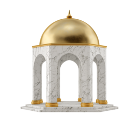 A white marble gazebo with a gold-domed roof isolated on a transparent background