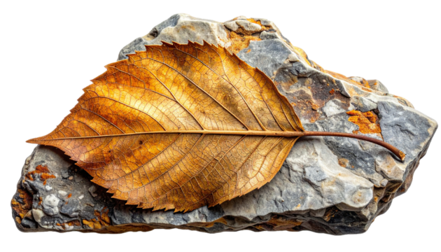 Close-up of Dry Brown Leaf on Rough Stone Surface Isolated on Transparent Background