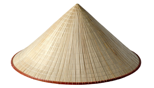 A conical woven hat, common in Southeast Asia, rests against a black backdrop
