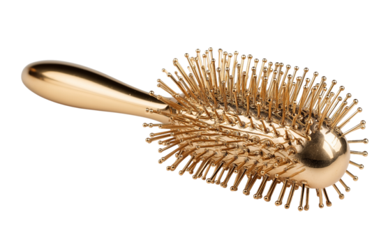 Gold Hair Brush with Metallic Pins isolated on a transparent background