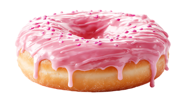Delicious doughnut with pink icing and sprinkles on transparent background for food lovers