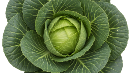 A vibrant, fresh head of cabbage with tightly packed leaves, isolated on a black background