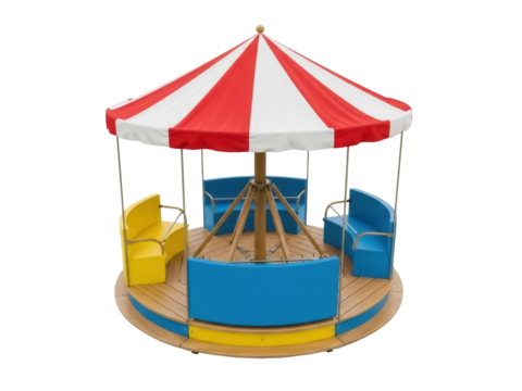 Isolated carousel merry-go-round colorful empty benches for children playground activity