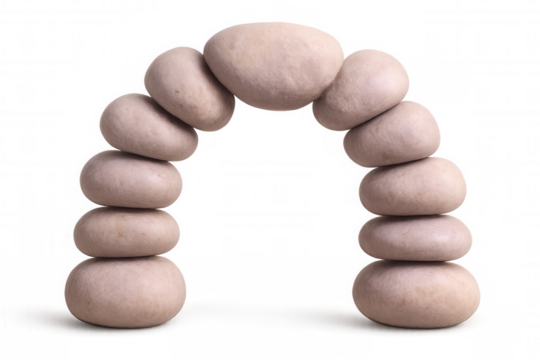 Full Shot of Weathered Stone Archway with Rounded Irregular Gray Stones and Fitted Gap Fillers Isolated on Transparent Background