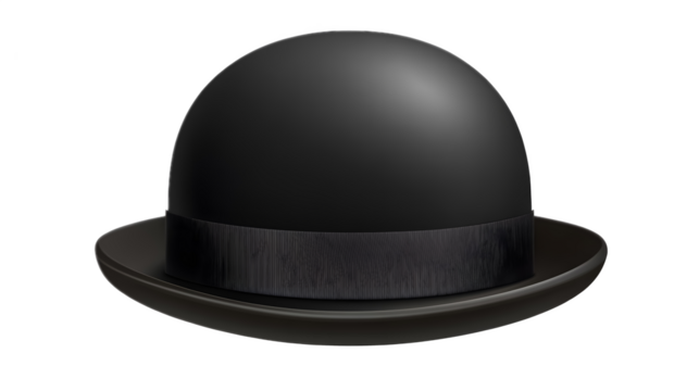 Black cap circular bowler hat isolated on a transparent background