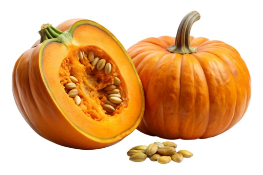 Orange pumpkins with seeds isolated on white background
