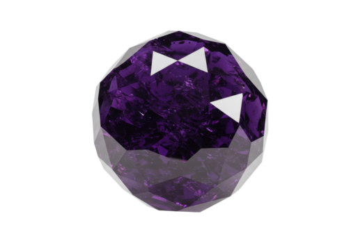 Isolated faceted gem material with polished surface of amethyst in roundish shape