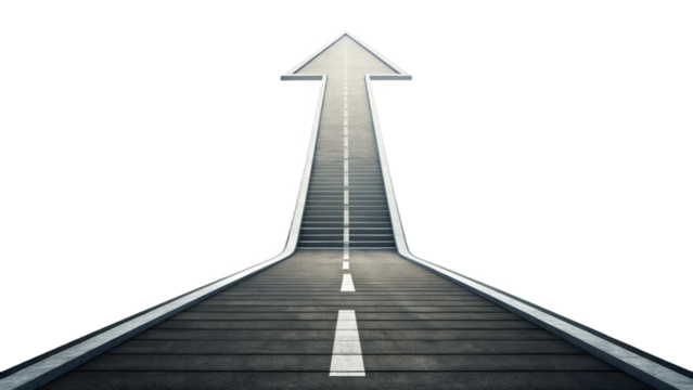 Black curved upward arrow for growth graphics, progress indicators, trend visuals, planning elements, and modern design overlays