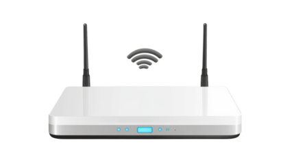Sleek wireless router featuring dual antennas, designed for optimal internet connectivity, isolated on a transparent background for versatile use