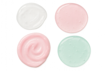 Different textured skincare gels displayed on a white background in a bright setting
