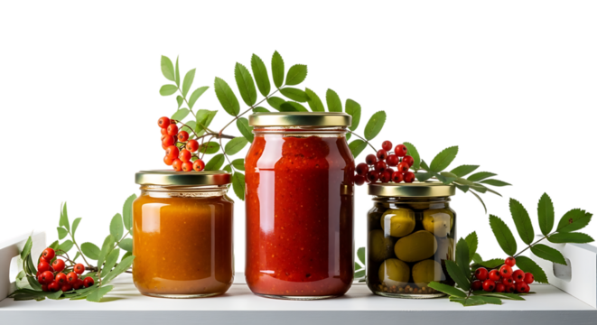 Isolated autumn rowan berry clusters with fern leaves, still life arrangement seasonal decor