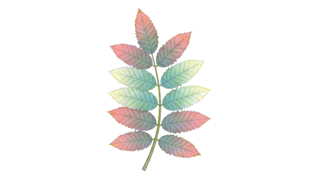 Green compound rowan leaf, detailed, botanical, cut out transparent