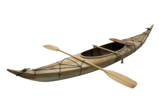 Wooden kayak isolated on transparent background