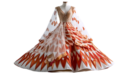 Regal royal attire with luxurious red and gold embroidery on transparent background, elegant historical costume for monarchy, nobility, and period drama designs