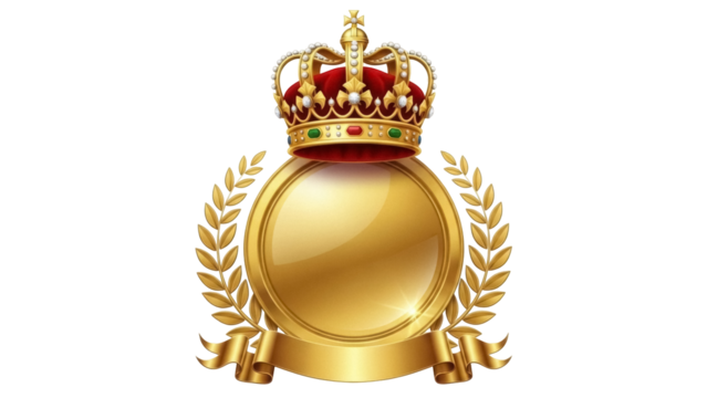 Golden royal crown PNG isolated on transparent background, monarchy symbol for power and authority, king or queen coronation