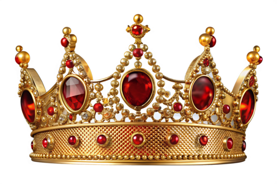 Regal gold crown with red jewels isolated on a white background