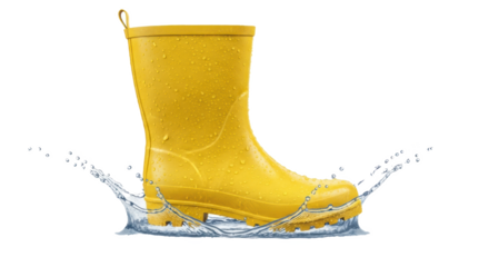 yellow wellington boots isolated on transparent background