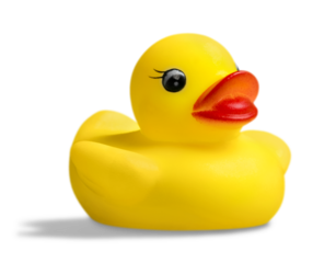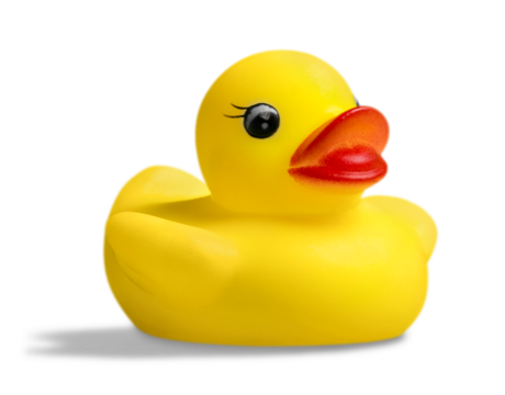 Cheerful yellow rubber ducky resting peacefully on a white background