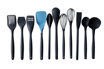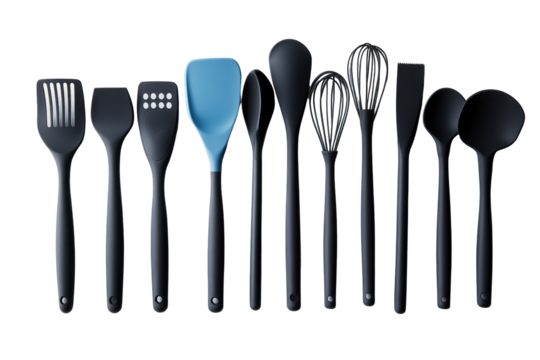 Gray silicone kitchen spatula isolated on transparent background, modern
