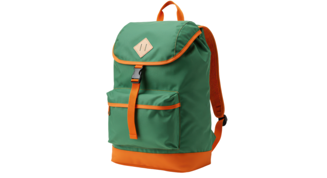 High quality image of a durable green and orange backpack perfect for hiking camping or outdoor adventures Ideal for travel blogs adventure gear websites and outdoor apparel marketing