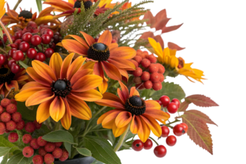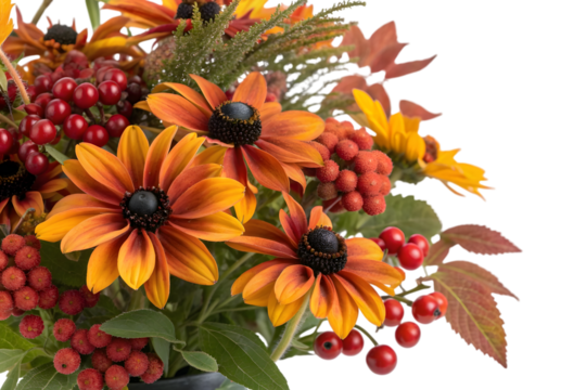 Autumn bouquet with rudbeckia isolated on transparent background
