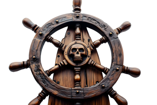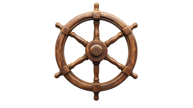 Wooden ship wheel nautical decor isolated on a white background png ai generated