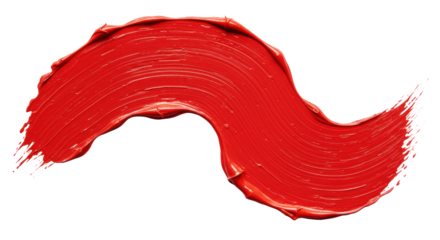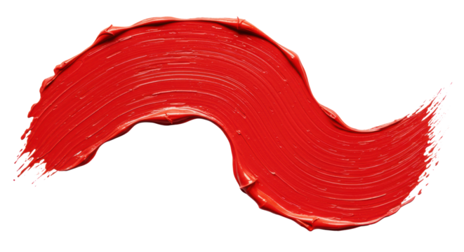 macro shot of a dynamic, floating, deep scarlet red impasto oil brush stroke, showing extreme texture against a seamless transparent background, vast negative space. concept for high-impact artistic