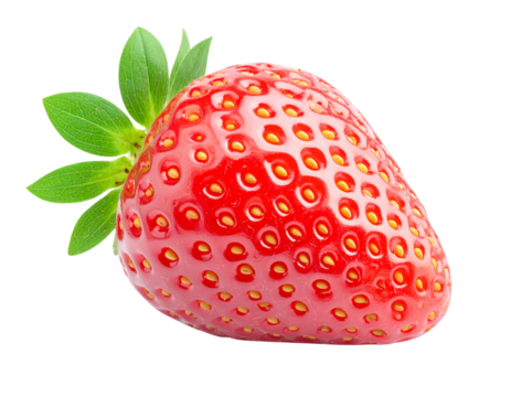 Whole Fresh Strawberry with Leaf, Side Angle, Isolated