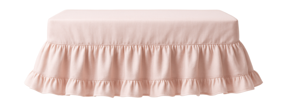 A crib skirt with ruffled edges, adding a decorative touch to a baby's crib.