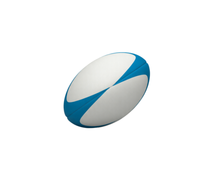 White and blue rugby ball for sports game isolated on transparent background