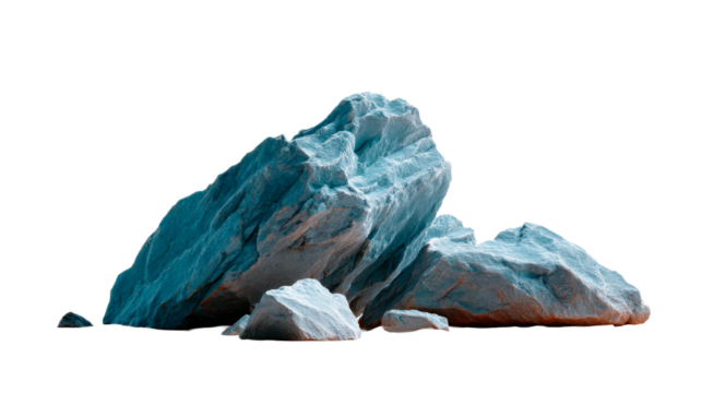 Large raw bluegreen geological rock formations with textured surfaces resting on a light ground offer a stark natural landscape for product presentations and background displays
