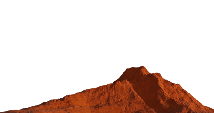 Rocky Martian landscape with sandy terrain, isolated on transparent cutout background