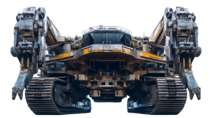 Heavy duty construction dump truck large industrial vehicle hauling materials mining site equipment studio photography isolated on white background