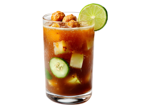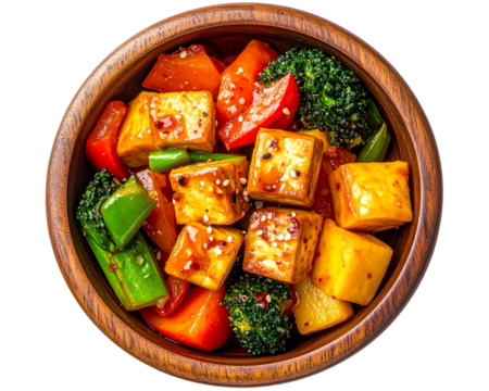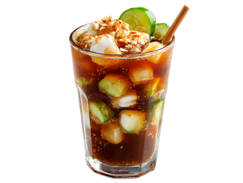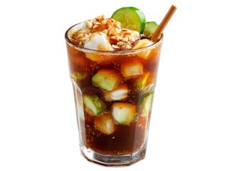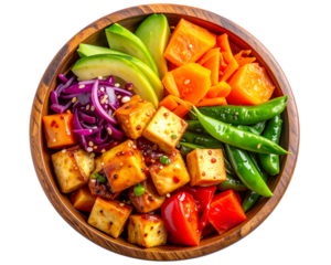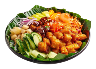 food Rojak. in a wooden bowl isolated on top view. transparent background png