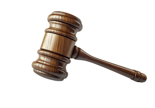 Wooden Gavel Isolated on a Clean White Background - Legal, Justice, and Courtroom Symbol  isolated on a transparent background.