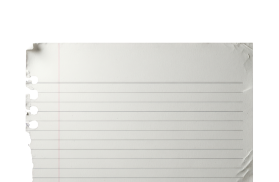 Vertical torn notebook paper with perforated top edge