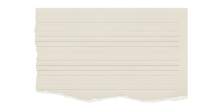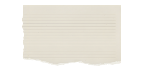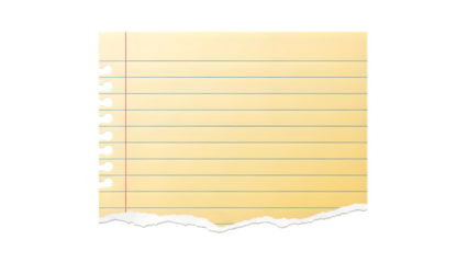 A piece of lined notebook paper with torn bottom and top edges isolated on transparent background