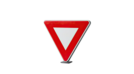 Yield Sign: A clear depiction of a yield sign. This traffic symbol, with its distinctive shape and color, represents safety, road rules and traffic regulation.