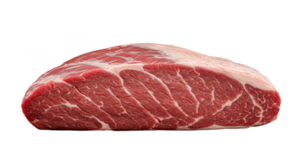 A raw piece of meat with visible marbling and fat on a transparent background ready for cooking or grilling