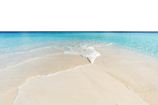Serene beach view showcasing golden sandy shoreline and calm blue ocean, cut out