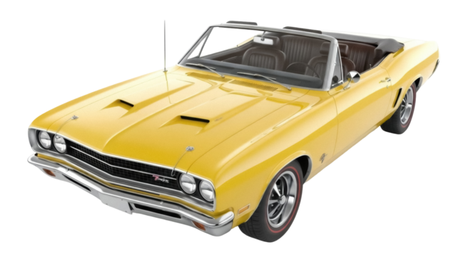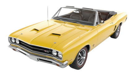 Isolated Vintage Yellow Convertible Car Displaying Classic Automotive Design Style and Power