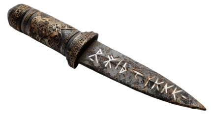 Ancient dagger with runic inscriptions isolated on transparent background