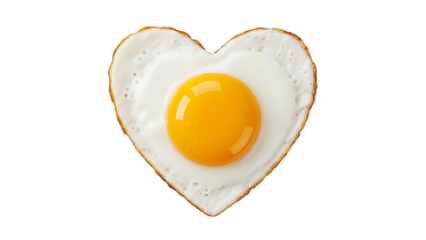 Heart shaped fried egg with runny yolk isolated on transparent background