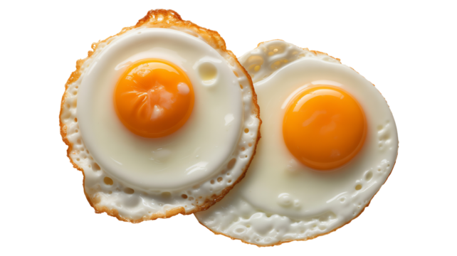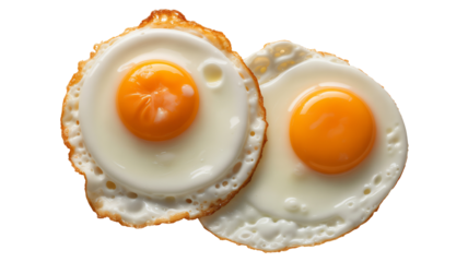 Two perfectly fried eggs with runny yolks isolated on transparent background
