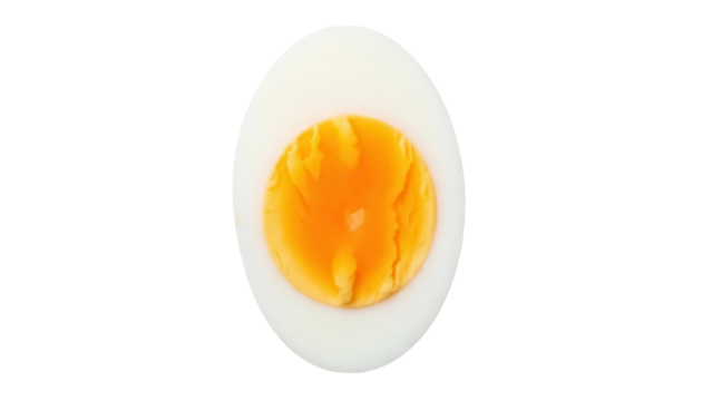 Soft boiled egg half isolated PNG on transparent background, healthy breakfast food with runny yolk for cooking and recipe use