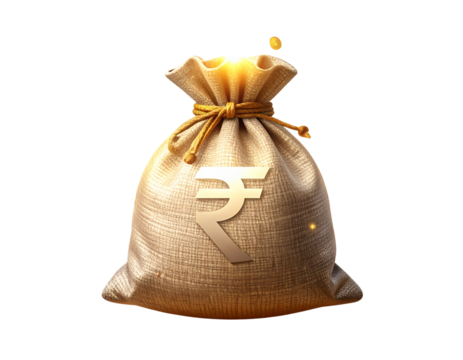 A money bag with the indian rupee symbol isolated    .ai generative, transparent background, white background. isolated on white background, png, jpeg, jpg.