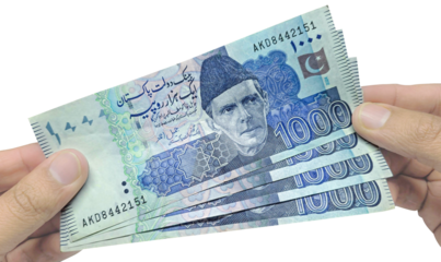 Pakistani 1000 Rupees money on hands Currency Rupees Notes