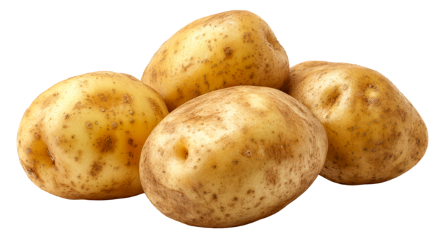 Group of Fresh Russet Potatoes with Textured Skin, cut out transparent