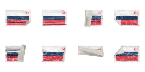 Set of Vintage Post stamp folded russia flag with old paper texture