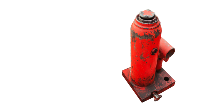Hydraulic metal jack old rusted in orange isolated in transparent background